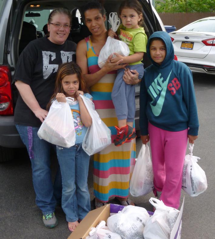 Pictured, from left: Lockport C.A.R.E.S. Manager Chris Yoder; Irianna, age 8; her mom, Maria; Izaeah 3; and Isabella, 10.