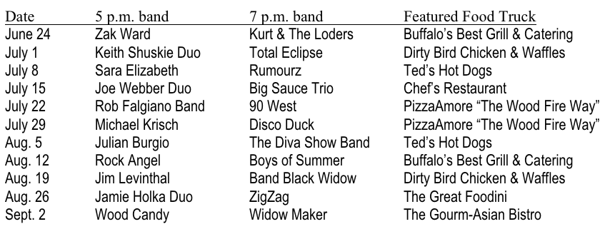 "We are proud to partner with Legends Bar & Grill this year," said Katie Kielaszek, Old Falls Street's director of events. Their generous sponsorship allows for us to start our programming at 5 p.m. and bring this series to our middle block, where our guests will be able to play with our 'Interactive Games' and enjoy the concerts from our colorful fleet of Adirondack chairs. We are also happy to host a regional food truck each week, including the ever popular Ted's Hot Dogs, Chef's Restaurant and the Dirty Bird Chicken & Waffles truck, for the very first time on Old Falls Street."