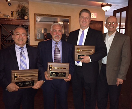Recognized for their services, from left: Robert Fagiani (2015), vice president of KeyBank's Center Street office in Lewiston; Ronald Villani (2013) of Villani Lawn and Landscape; Steve Broderick (2014), supervisor of the Town of Lewiston; and current President Al Frosolone of Niagara's Choice Federal Credit Union.