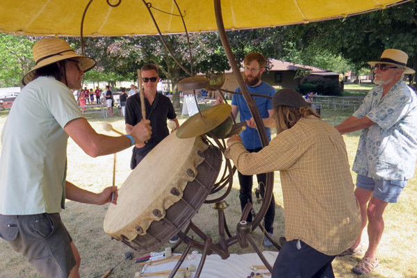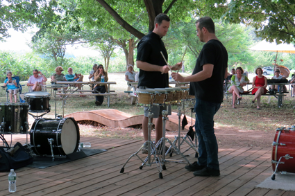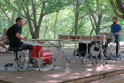 Drummers drum away on "Scorpiotron" at Artpark.