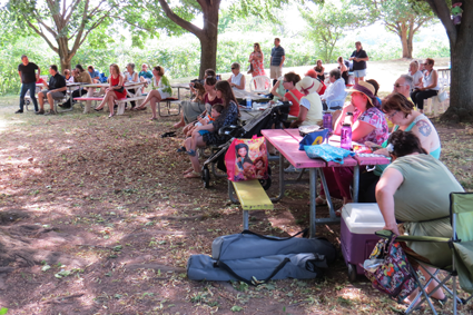 The crowd enjoys the percussion garden drumming.