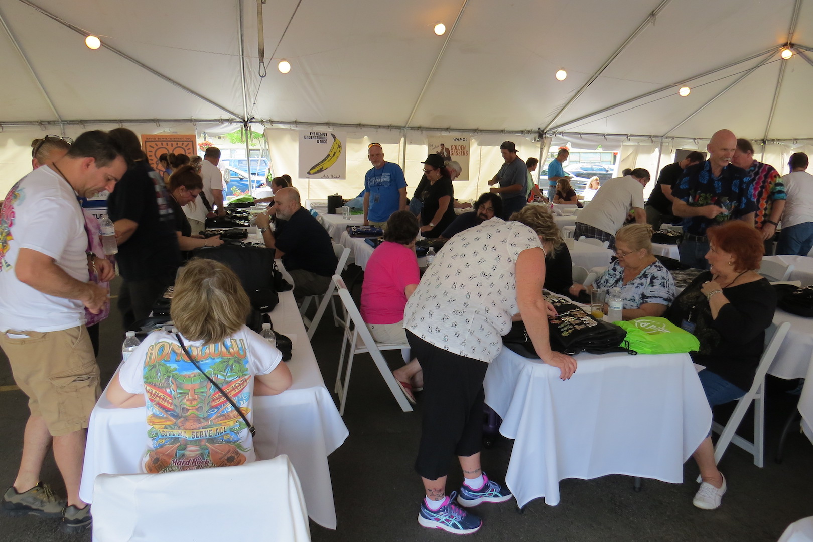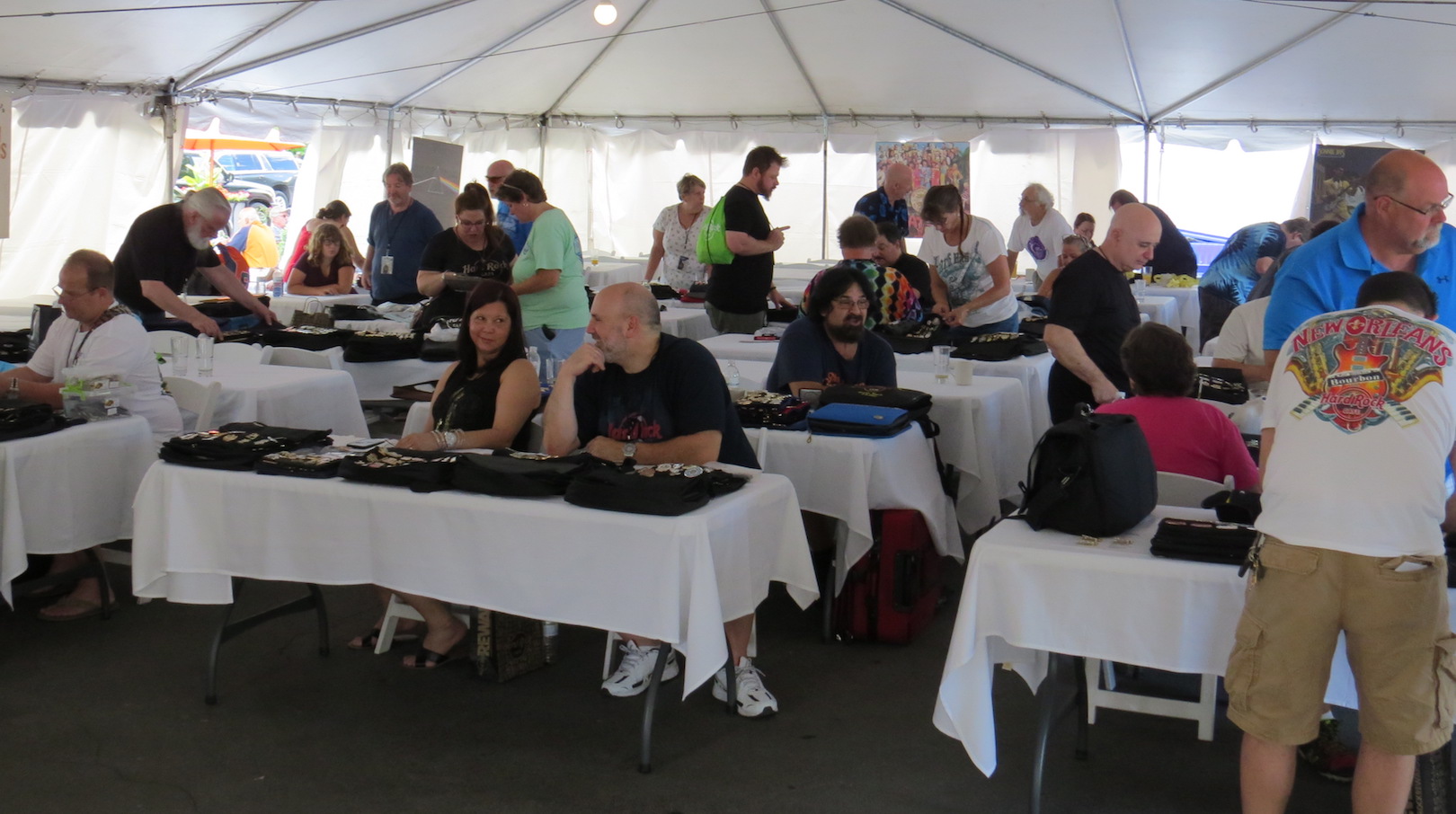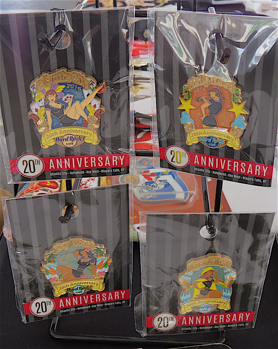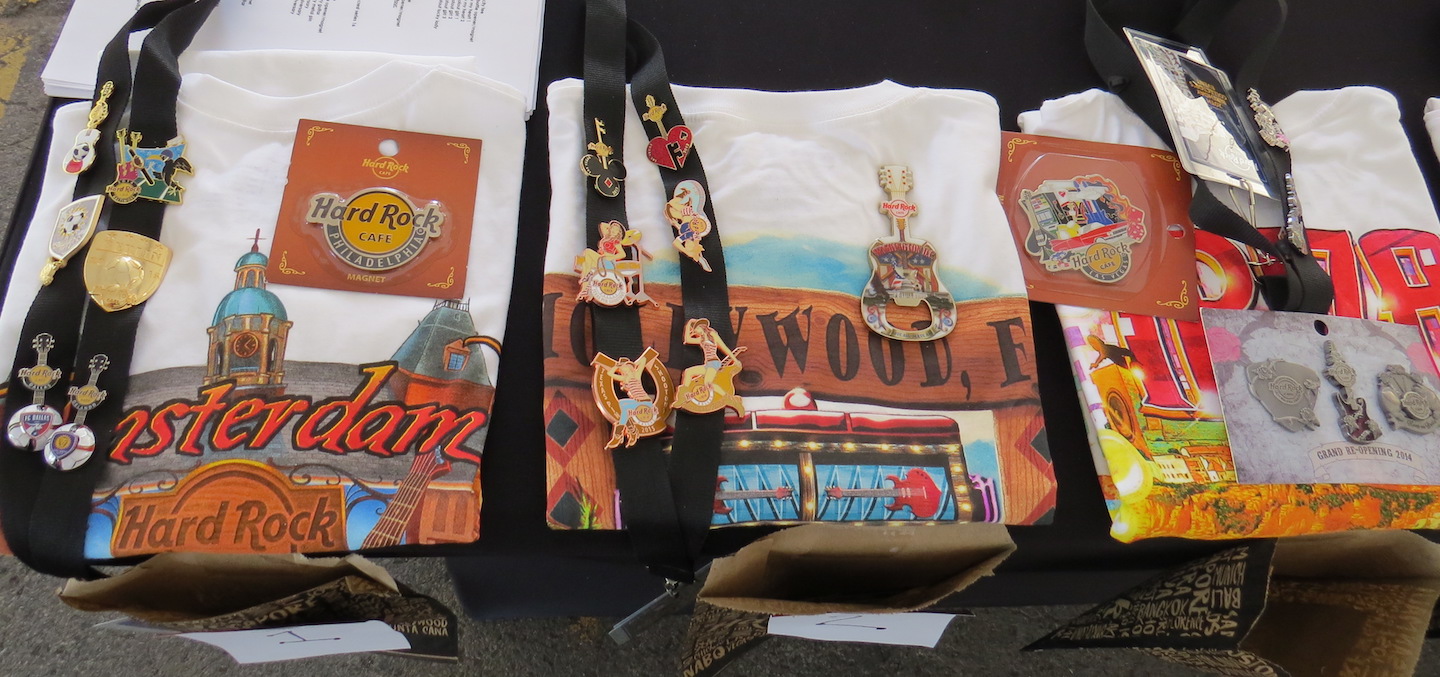 On Friday night, Hard Rock held a reception to welcome its diehard fans. The 20th anniversary pin set and cordial were unveiled Saturday morning. Collectors were treated to breakfast, as they tried their hand at a Chinese auction. Guests were asked to bring an anniversary pin and city magnet to add to the auction bowls.