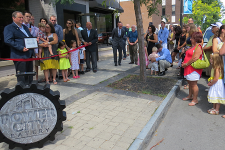 Congressman Brian Higgins, Assemblyman John Ceretto, Mayor Paul Dyster, members of the Niagara Falls City Council, local business and tourism leaders, friends and family joined in a ribbon-cutting ceremony welcoming restaurant owners Kyle Bajor, Joseph Hotchkiss and Michael Lewis. Complimentary samplings of signature items were offered to those in attendance, and included house-made pastrami on rye and New York-style cheesecake with fruit.