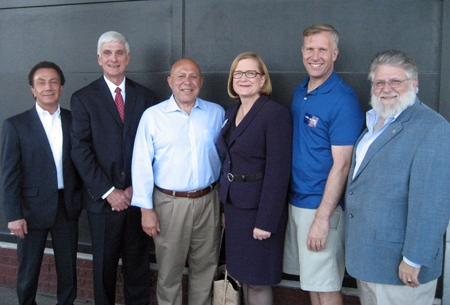 Below, from left: Lorigo; Dan Furlong, candidate for New York State Supreme Court; Angelo Morinello, candidate for New York State Assembly; Mary Slisz, candidate for New York State Supreme Court; Chris Jacobs, candidate for New York State Senate; and Backus. (Photos by Skip Mazenauer)