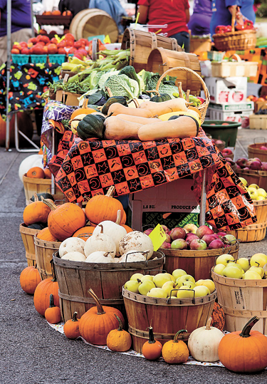 The farmers market, located on Center and South Fifth streets, will include a variety of fall harvest produce favorites, as well as wine, fresh cider, hardy mums and honey.