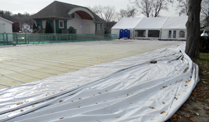 Over the past week, town crews began the installation process that has seen the rink's base assembled and a maze of tubing connected, the warming tent put up, electrical connections completed and board work underway.