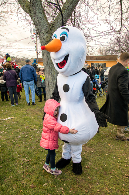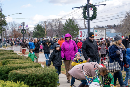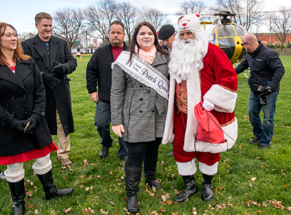 Santa had breakfast with families inside the Red Brick Municipal Building before arriving by helicopter at Academy Park. Once he landed, Peach Queen Angelica Beiter and local officials including Mayor Terry Collesano and Town of Lewiston Supervisor Steve Broderick greeted him. From there, Santa joined with merrymakers to parade down Center Street en route to meeting with scores of little ones at the International Peace Garden.