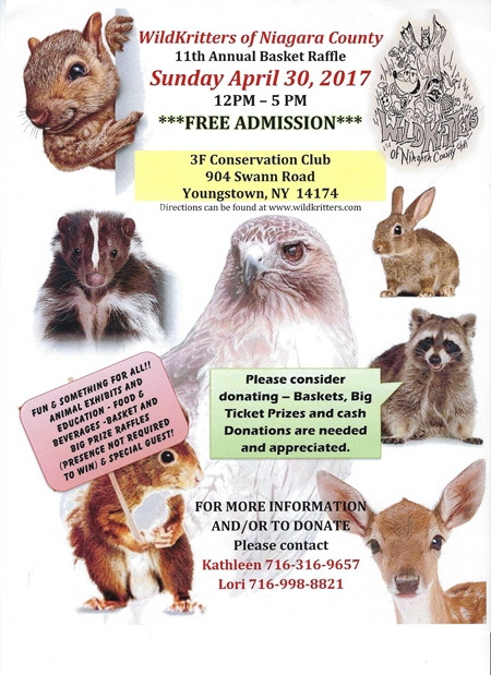 To help offset costs, Wild Kritters is holding its 11th annual basket raffle from noon until 4 p.m. Sunday, April 30, at the 3F Conservation Club, 903 Swann Road, Youngstown.