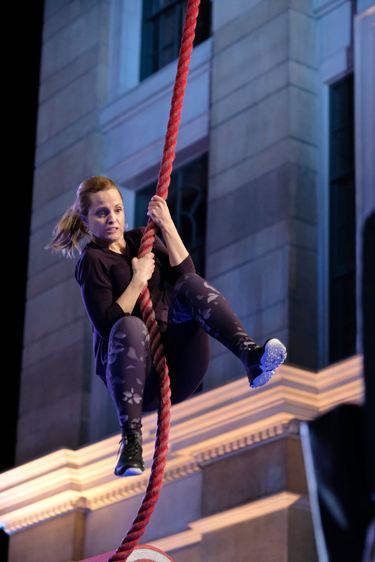 "The Red Nose Day Special": "American Ninja Warrior" celebrity contestant Mena Suvari swings to the finish. (NBC photo by Tyler Golden)