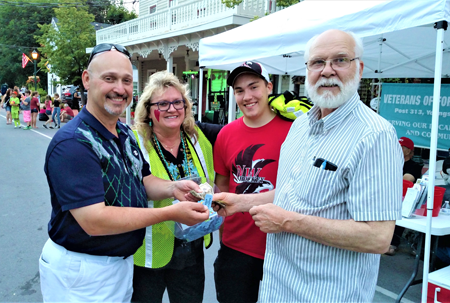 Left to right, Phil Buffone of the Sentinel, Cheryl Irish-Butera YBPA president, Peter Buffone, and Jerry Brett, YBPA vice president. (Photo by Mark Butera, YBPA secretary) Shown below is another Street Dance scene, courtesy of K&D Action Photo & Aerial Imaging)