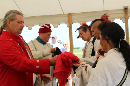 Native allies were critical to British success on the New York Frontier during the American Revolution. At "Soldiers of the Revolution," Natives trade with British officers during prisoner negotiations.
