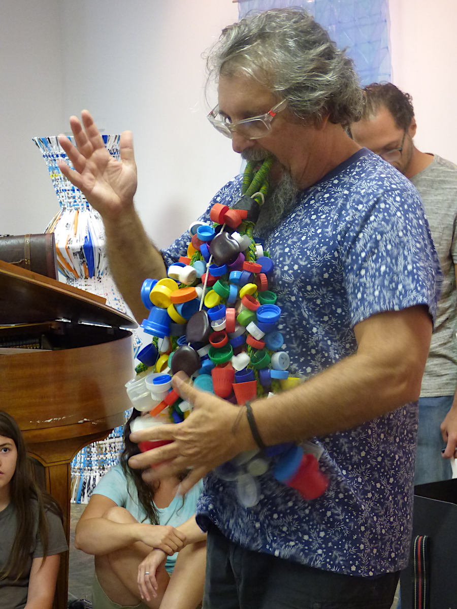 Baptista has collaborated with Buffalo-based sculptor Shasti O'Leary Soudant and students from the University at Buffalo to create a colorful, interactive, sound-generating work called "Beat Blossom" (shown in the photos), as well as an original musical composition created especially for the installation.