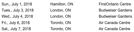 Shania Twain tour local dates:
