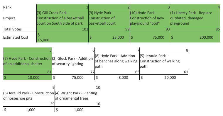 The PB360 process empowered city residents to propose park improvement projects and vote directly on the allocation of $360,000 in Community Development Block Grant funds from U.S. Department of Housing and Urban Development to carry those projects out.