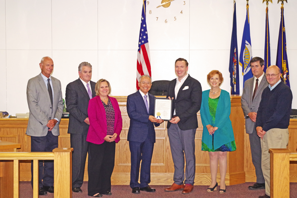 Pictured, Rev. Dr. Sung Ho Lee accepts the proclamation from Town Supervisor Nathan McMurray. (Photo by Larry Austin)