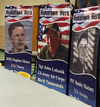 On Tuesday night, North Tonawanda Mayor Arthur Pappas announced the next round of Hometown Heroes banners to be revealed in the city. The banners are now open to all veterans and not just active duty members. This year the American Legion Sikora Post 1322 recognized MM2 Stephen Sikora, U.S. Navy; Sgt. John Lukasik, U.S. Army Corps; and PFC Stanley Maziarz, U.S. Army.