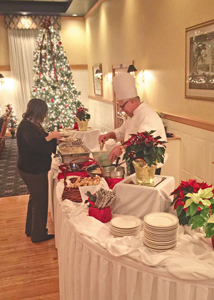 The buffet station at the Buffalo Launch Club was decorated in holiday style for the annual holiday party of the Grand Island Chamber of Commerce.