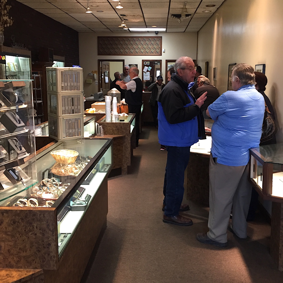 On Saturday morning, about 25 of Dave Costanzo's close friends surprised him on his last day of business at Yaseen's Jewelers. DiCamillo Bakery provided a cake while Mom's Family Restaurant provided coffee for all visitors. The surprise brought tears to Costanzo's eyes as his friends thanked him for his years of service, friendship and support to the community.