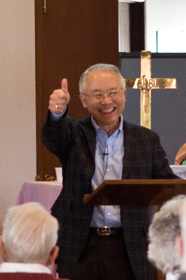 Rev. Dr. Sung Ho Lee of Trinity United Methodist Church gives the thumbs-up sign during the Lenten Luncheon at Trinity Wednesday. Lee explained how the thumbs-up sign means something different in American than in his native Korea. He discussed cultural differences in his discussion titled "Justice Among People with Various Cultures."
