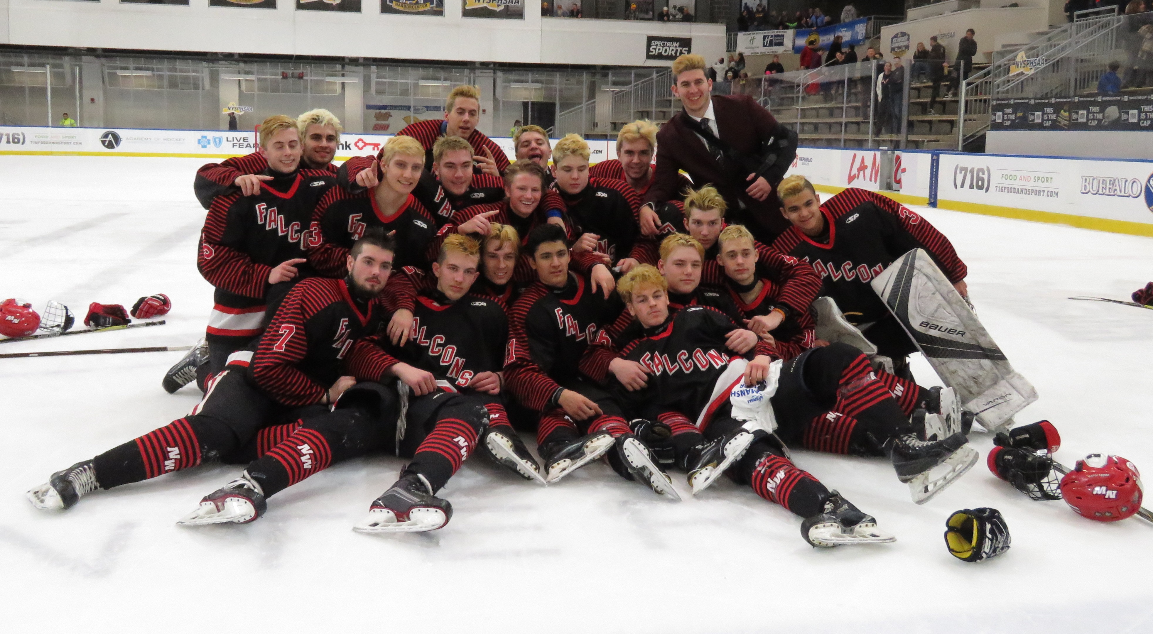 The Falcons will look to win their first state title versus either Massena or Victor at noon tomorrow, back at the HarborCenter.