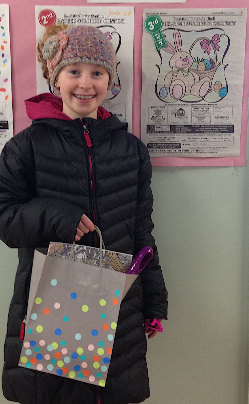 Prizes were awarded on Saturday to the winners of the 2018 Lewiston-Porter Sentinel Easter coloring contest. The family-friendly competition was co-sponsored by DeGiulio's Pharmacy, Niagara County D.A.R.E. (Niagara County Sheriff's Office), Lewiston Village Pediatrics, Friends of Ransomville Free Library and Allstate (Phil Mastantuono Agency).
