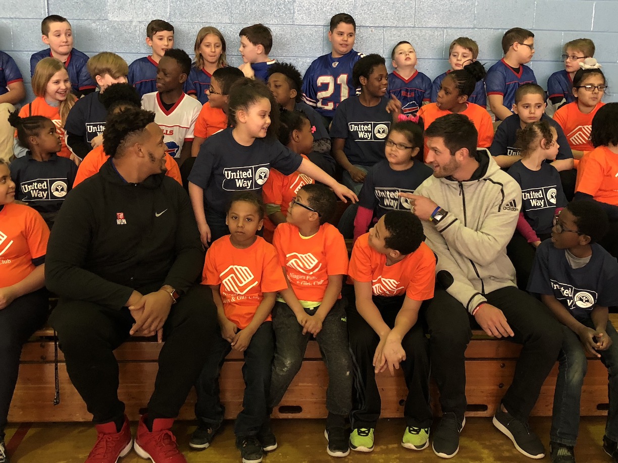 The United Way of Greater Niagara, in partnership with General Motors Components Holdings of Lockport, welcomed Buffalo Bills quarterback Nathan Peterman and offensive tackle Dion Dawkins to the Boys and Girls Club of Niagara Falls on Friday.
