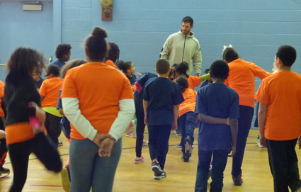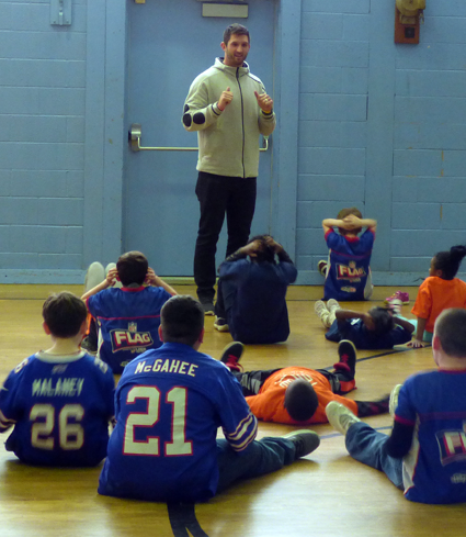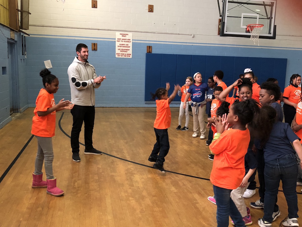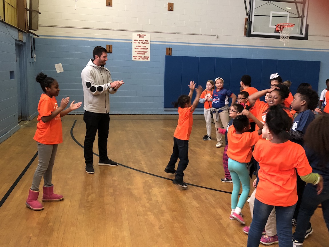 The two athletes were on hand to create awareness of the importance of running before- and after-school programs in Niagara County. They posed for photos and exercised with more than two-dozen youth.