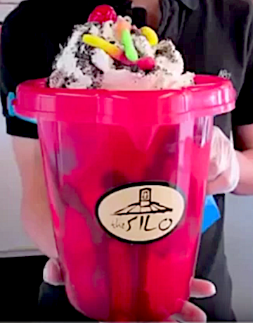 Lewiston's waterfront eatery recently opened for its 20th season. On this night, five youth from Niagara Falls visited The Silo and tried their hand at the "Sand Dock Sundae." The massive dessert is nine scoops of ice cream - almost an entire gallon - topped with whipped cream, crushed Oreo cookies (representing dirt), gummy worms (substituting for actual creepy-crawlies) and a cherry (which is just a fruit topping). Instead of a spoon, the sweet treat eaters received a toy shovel.