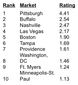 Following are the Top 10 local markets through the fourth Sunday of the 2018 Stanley Cup Playoffs: