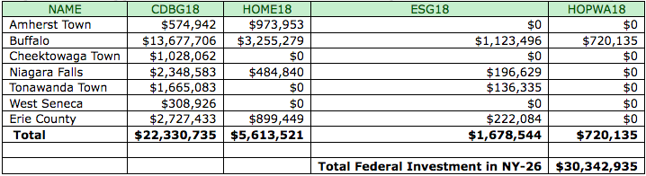 Congressman Brian Higgins announced more than $30.3 million in federal funding, allocated through the U.S. Department of Housing and Urban Development, for projects and programs in Western New York.