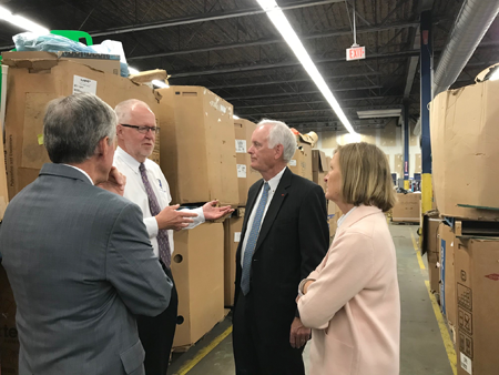 Members of Goodwill explain aspects of the agency to KeyBank and First Niagara Foundation leadership.