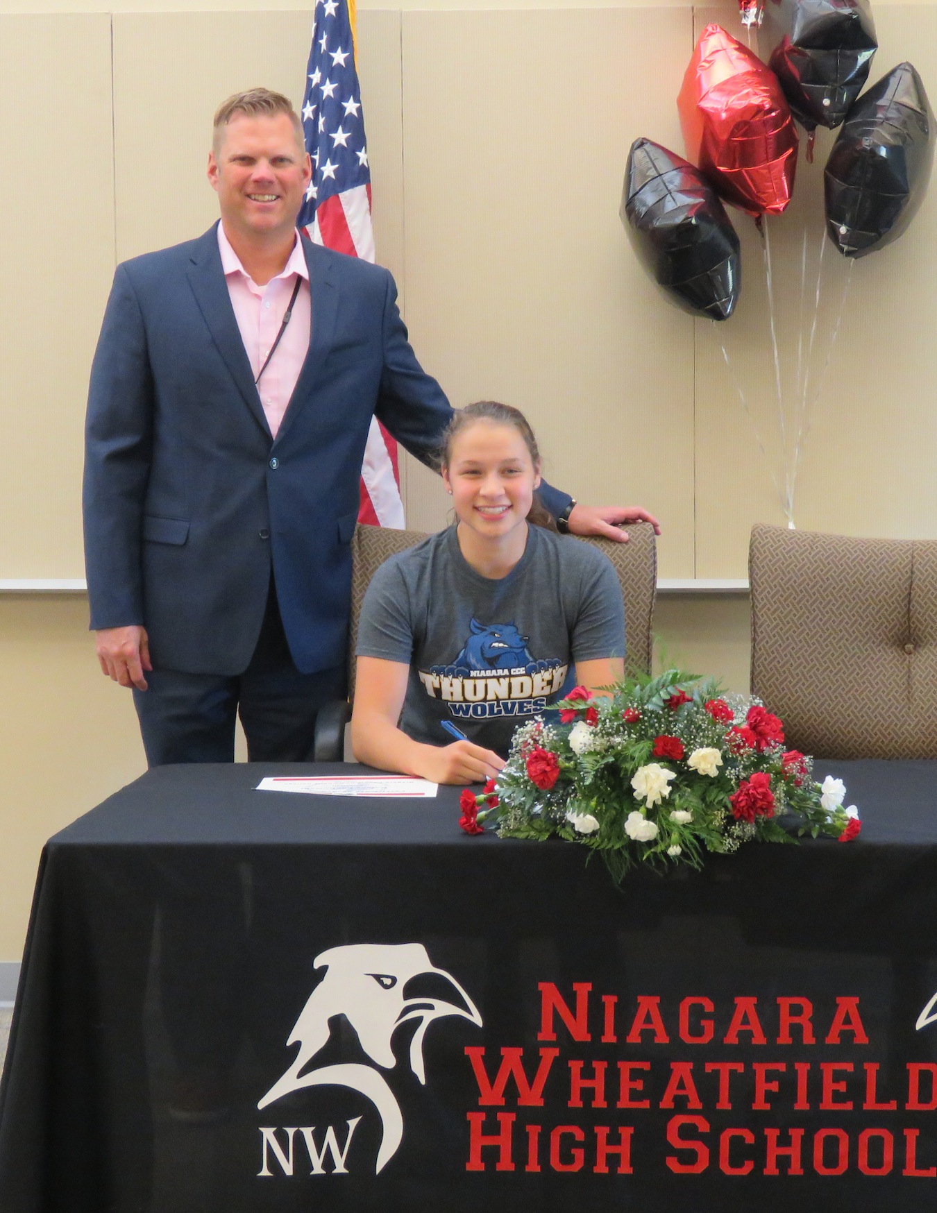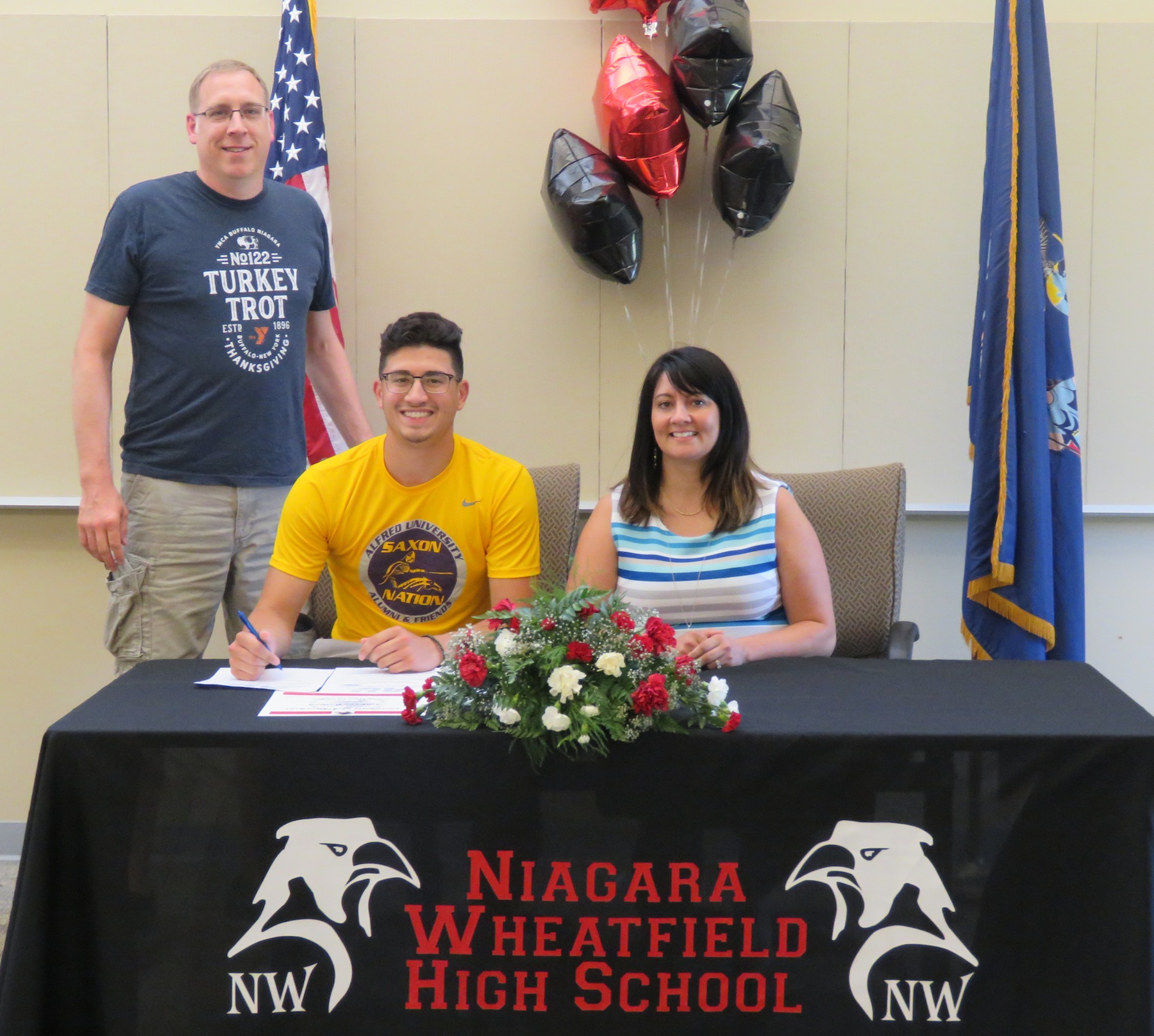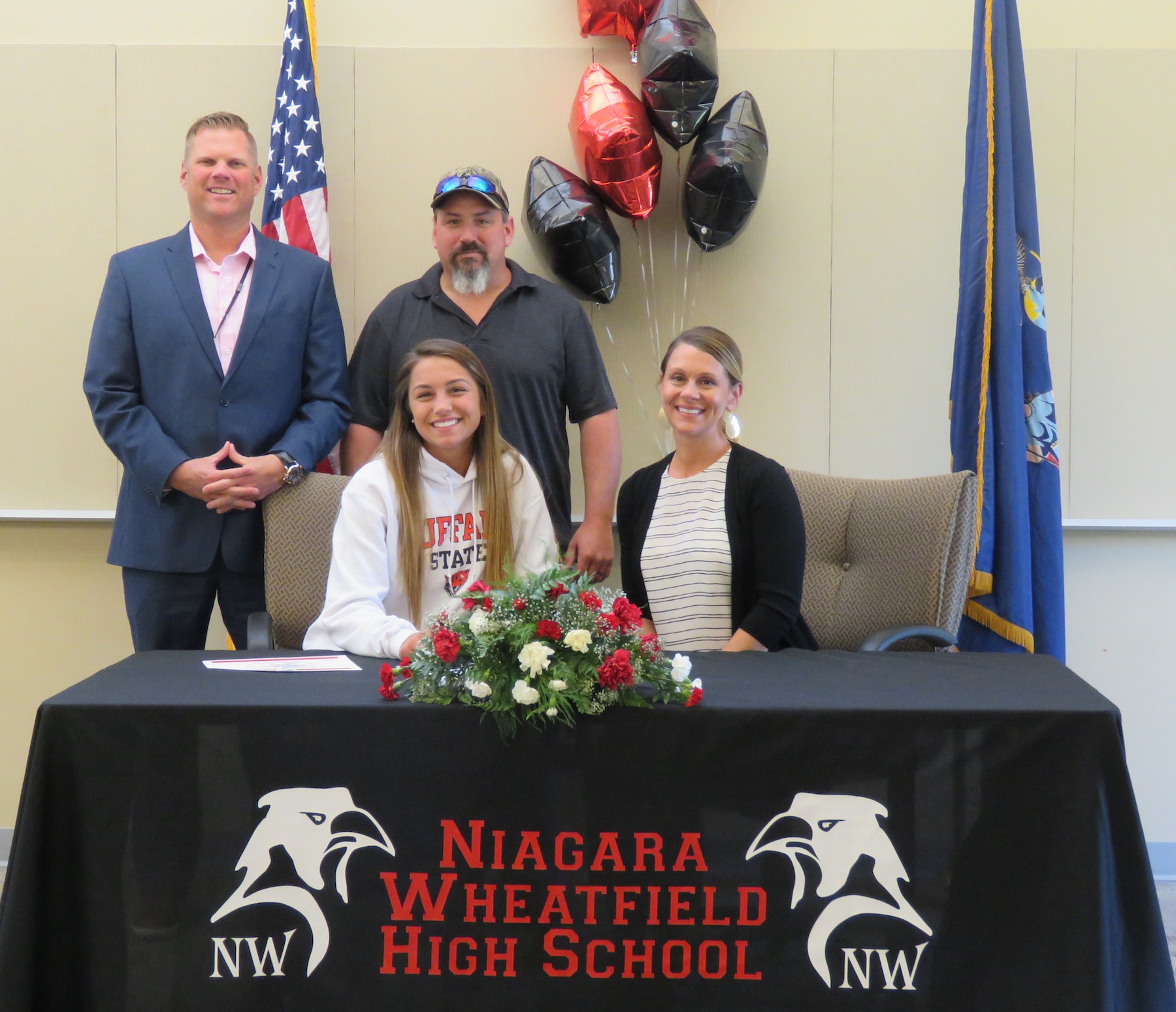 On Thursday, Niagara-Wheatfield High School hosted their second college signing day of the year. Several student-athletes who made their college decision following the February signing were honored by N-W Athletic Director Matt McKenna. In all, five students signed in front of their peers, while one student was absent.
