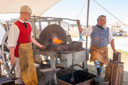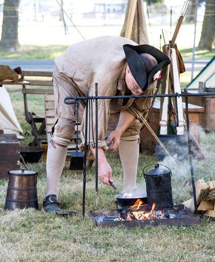 Wandering around the British, French and Native camps offers many chances to mingle with re-enactors and learn about their trades, like British men making their suppers, a traveling forge in the French camp and Native women working with corn.