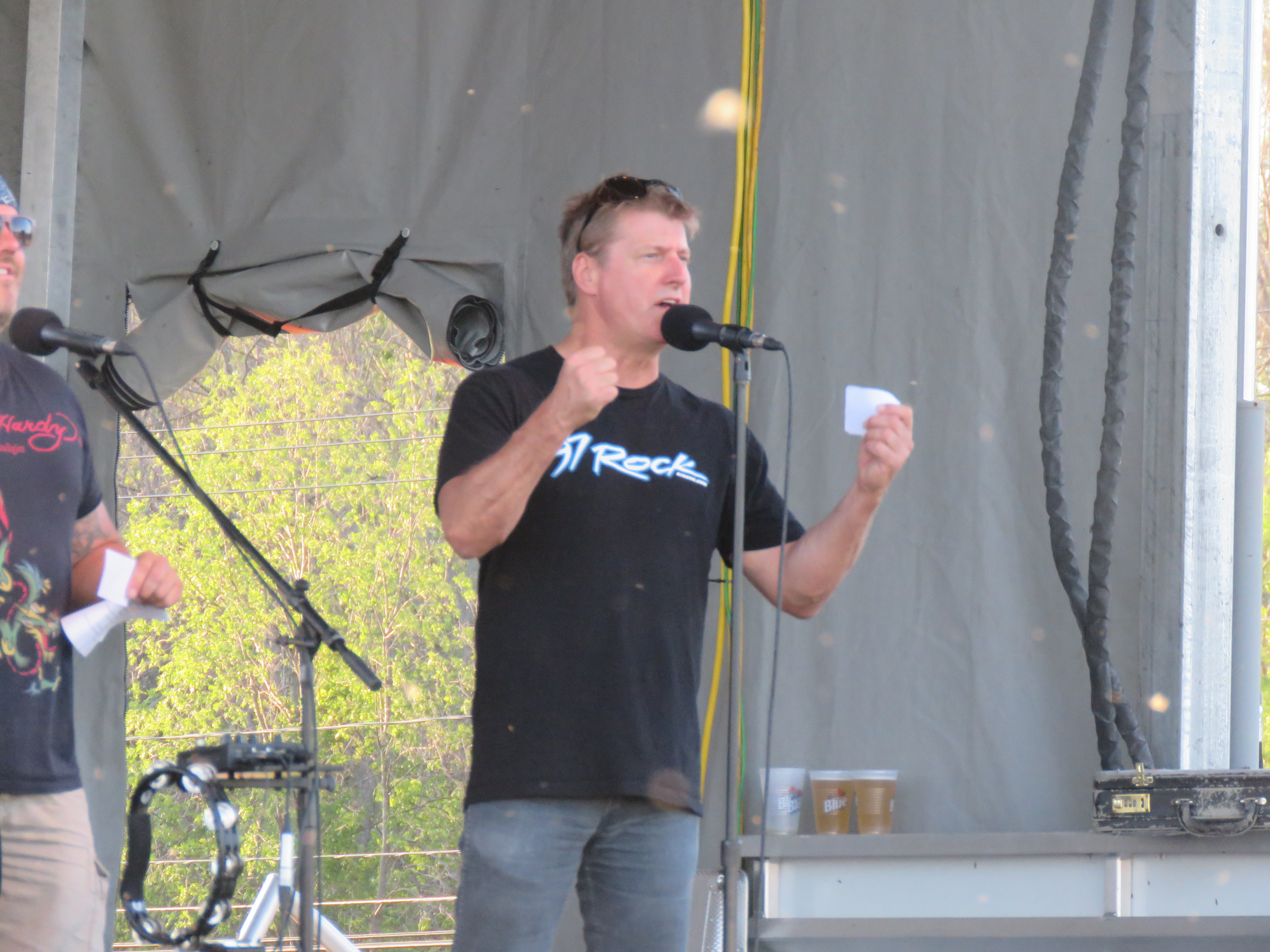 Dave Jickster of 97 Rock speaks on the stage at Gratwick Park.