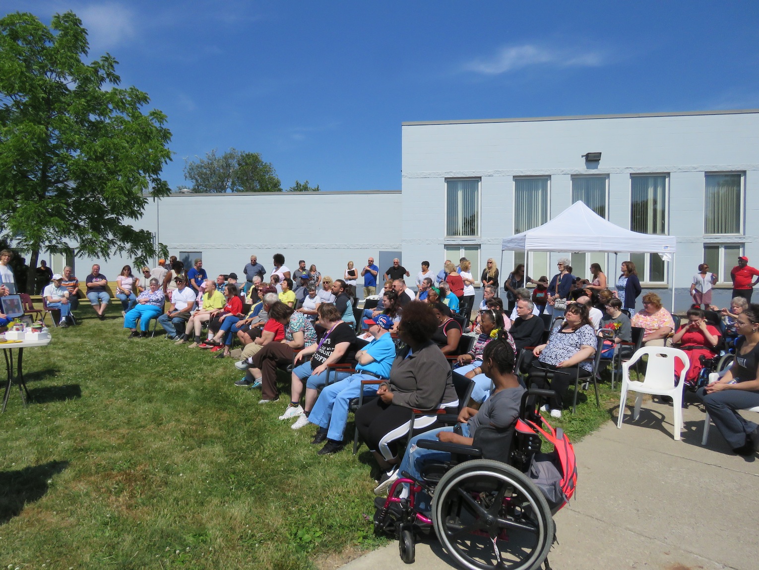 Opportunities Unlimited of Niagara hosted a brief ceremony this morning to unveil the winning painting created by program participant, Ruth Denk, which was transformed into a 10-foot by 10-foot wrap mural and installed on the Covanta greenhouse at OUN.