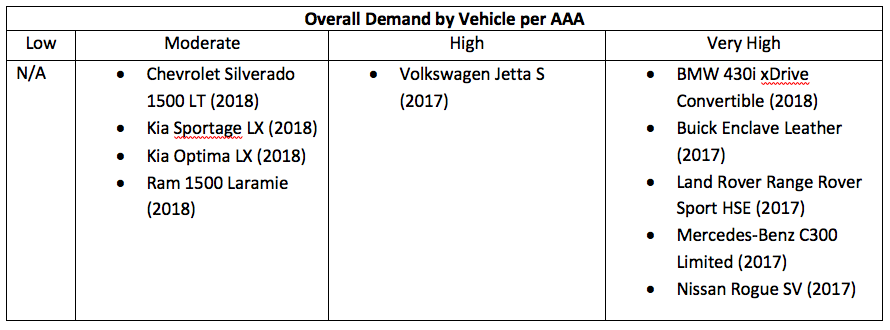 Expanding on research released in October 2017, AAA also evaluated distraction levels caused by built-in (native) infotainment systems in 10 new 2017-18 vehicles. A total of 76 drivers ages 21-35 participated in the study of these additional vehicles. Research found none of the 10 vehicle infotainment systems produced low demand, while six systems generated high or very high levels of demand on drivers: