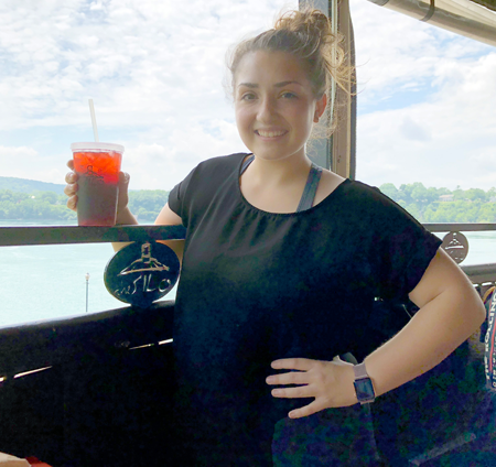 The Silo's Lexi Alfiere poses with the restaurant's new tumbler cup.