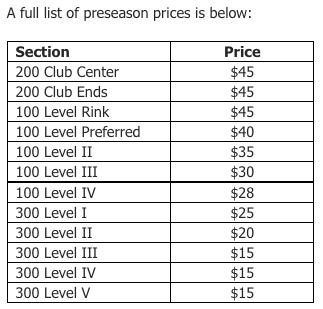 The Buffalo Sabres on Wednesday announced ticket prices for the team's 2018 preseason games at KeyBank Center.