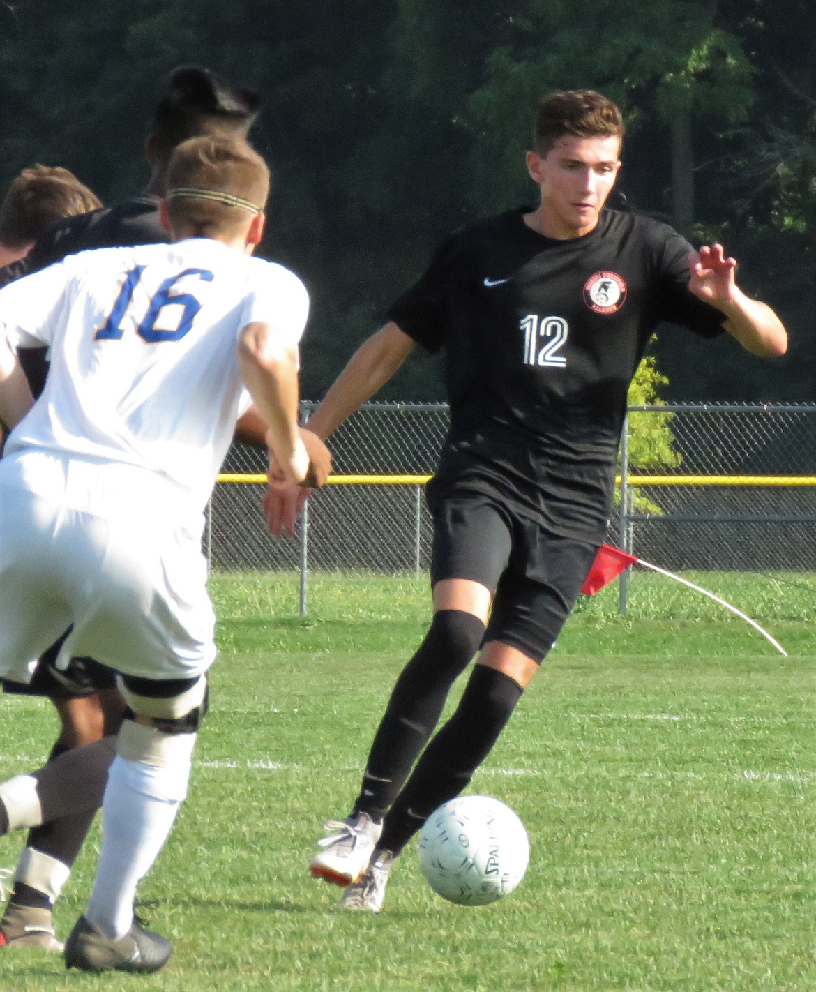 Jacob Vallas dribbles through traffic during the Falcons boys soccer team's Niagara Frontier League opener versus Lockport. Vallas scored the lone goal in N-W's 1-0 win.
