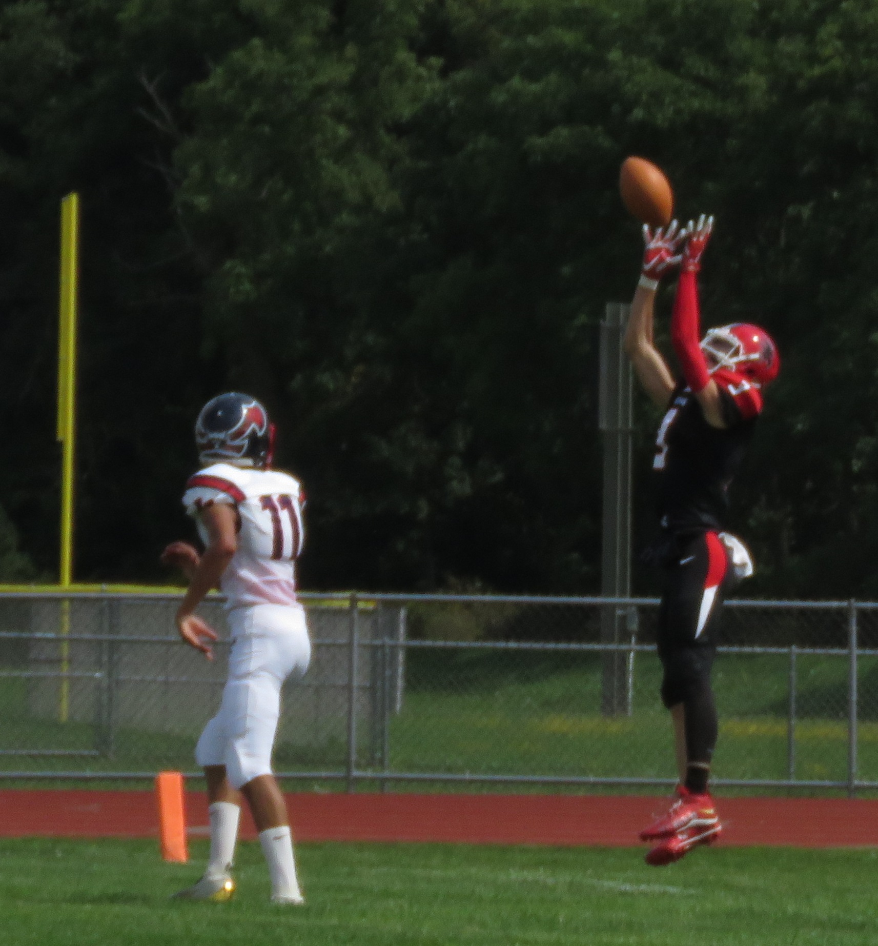 Bryson Solomon intercepted a North Tonawanda deep ball on the Lumberjacks ensuing possession. Three plays after the interception, Parks maneuvered around several defenders and ran 83 yards for his second touchdown of the day.