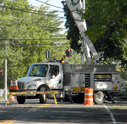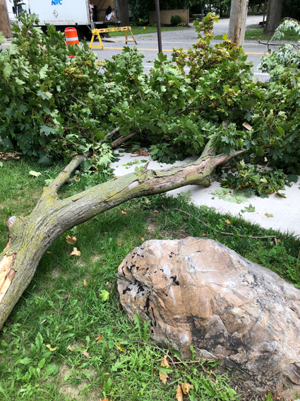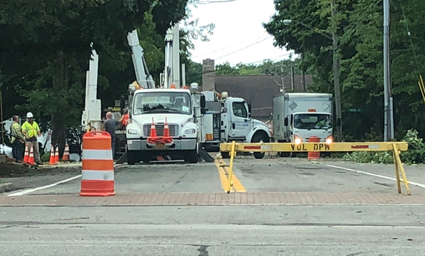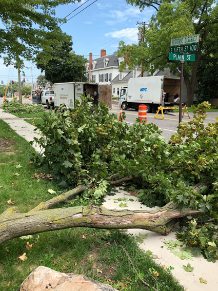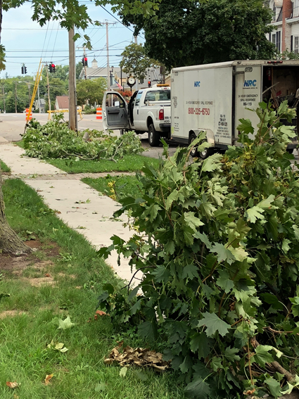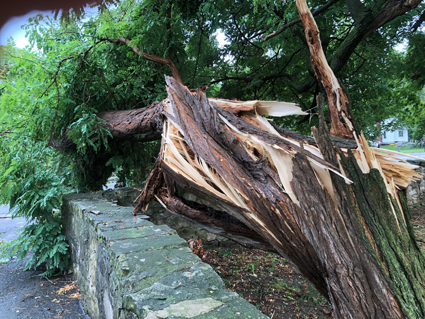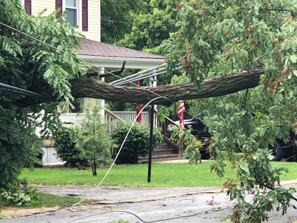 A thunderstorm invaded the Village of Lewiston late Monday afternoon, dropping trees, limbs and branches. A South Fifth Street transformer was injured, which temporarily left some residents without power. That portion of roadway was closed for the first half of Tuesday, as village Department of Public Works crews cleaned up the site and restored the power generator.