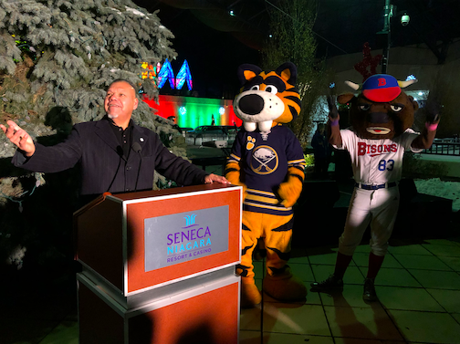 •Holiday festivities began early, with a tree-lighting Thursday at Seneca Niagara Resort & Casino in Niagara Falls. Gaming officials were joined by Santa and Mrs. Claus, Buster Bison, Sabretooth, adoptable dogs from the SPCA of Niagara and "The Midtown Men" (original Broadway cast of "The Jersey Boys").