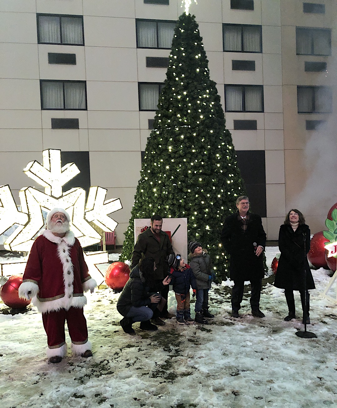 Jingle Falls began Friday night on Old Falls Street in Niagara Falls. The event included a lighting of the tree by the Rotella family, Santa, Mayor Paul Dyster and local tourism leaders. A grand fireworks display followed.