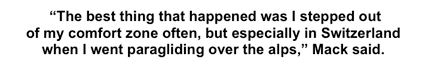 "I wanted to become more self-aware and more confident in myself, which I can say I now am thank to my travels." Mack explains how her pushed her boundaries and tried something she'd never done before.