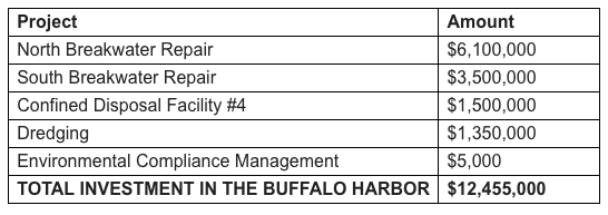 "Advancing a vibrant waterfront and realizing the community benefits that go along with it requires due diligence in protection of the water's edge and maintenance of the waterways for safe commercial navigation, recreational boating and water sports," Higgins said. "This significant federal investment in the Buffalo Harbor provides a generational opportunity for significant repairs, and we are fortunate to have true professionals at the Army Corps Buffalo District to lead that mission."