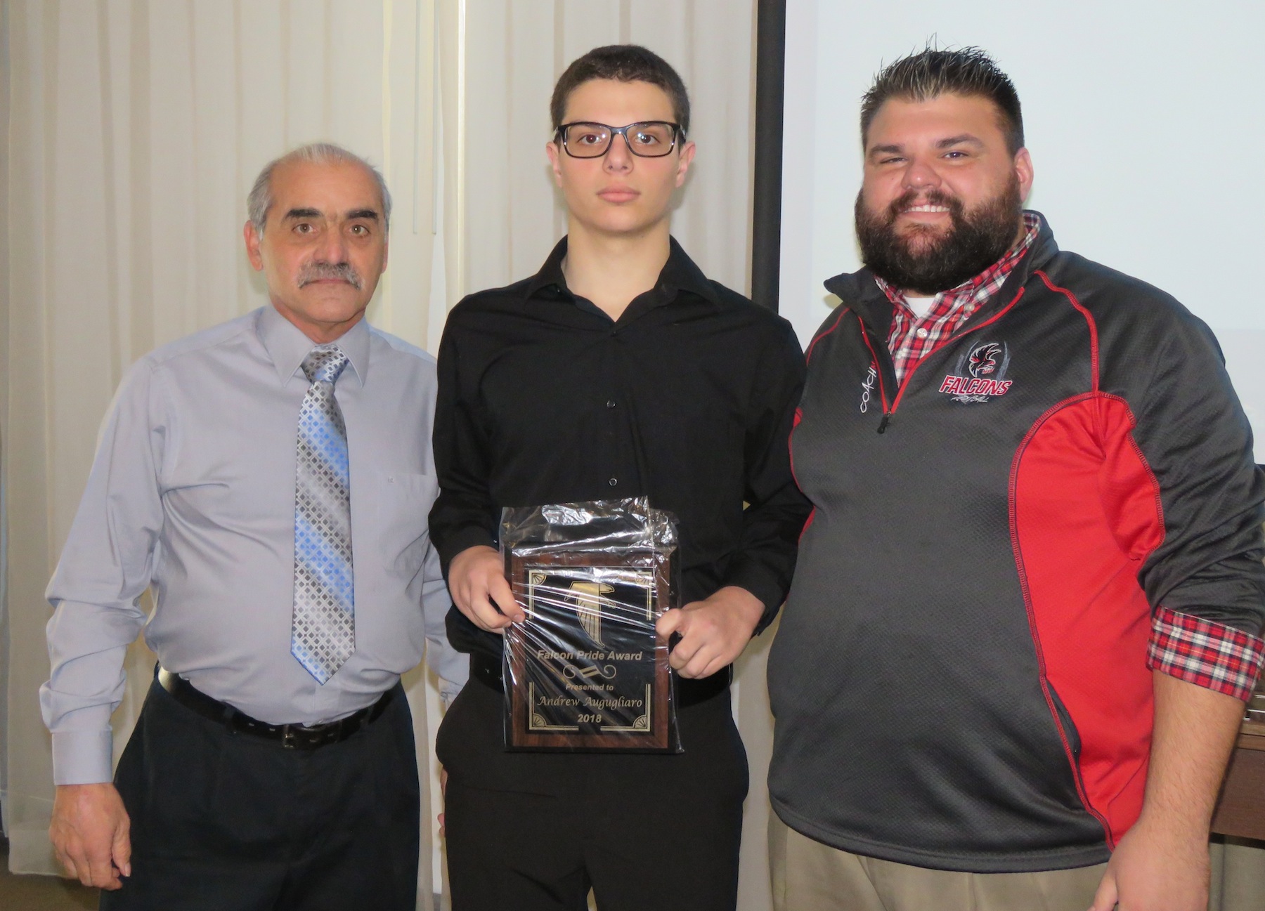 Andrew Augugliaro was awarded the 2018 Falcon Pride Award. The award goes to a player who demonstrated pride in every aspect of his game, whether during practice or on game day, and is someone who is always will to do anything necessary to help the team succeed.