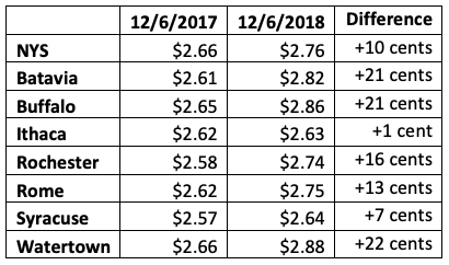 Here is a snapshot of year-over-year differences for New York state and AAA Western and Central New York regions:
