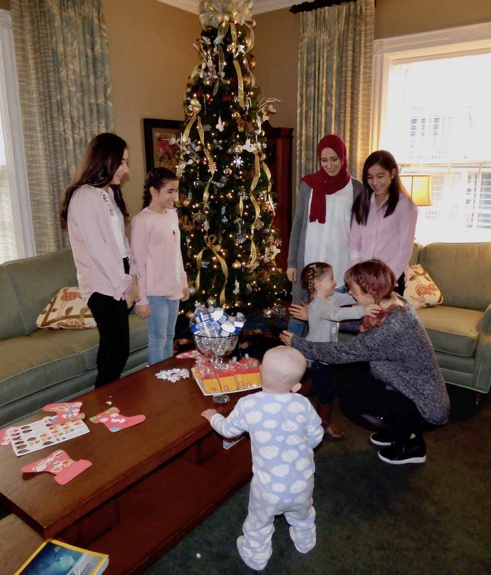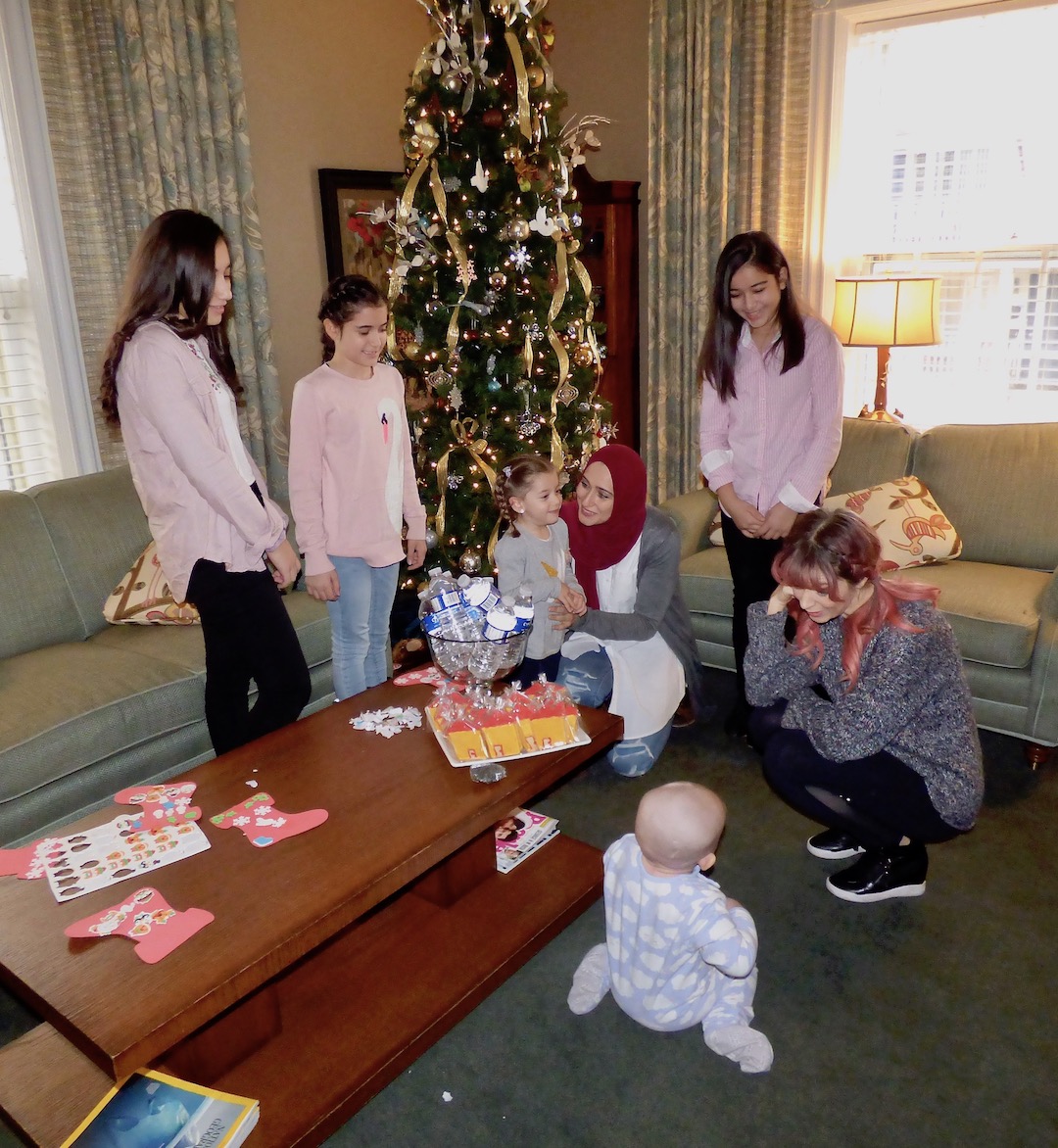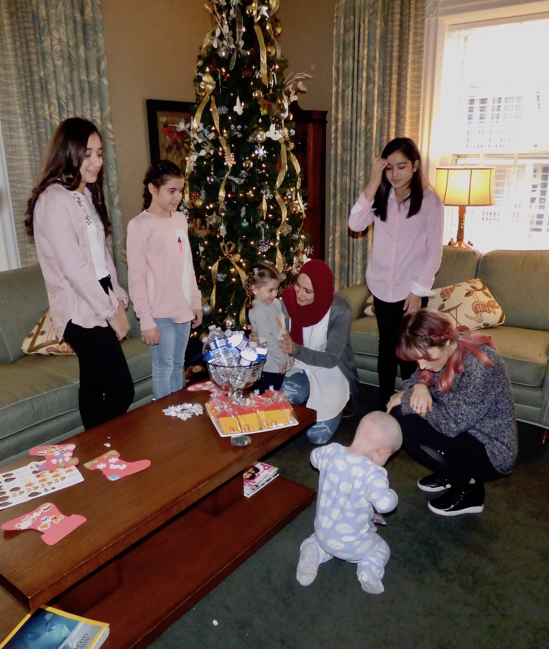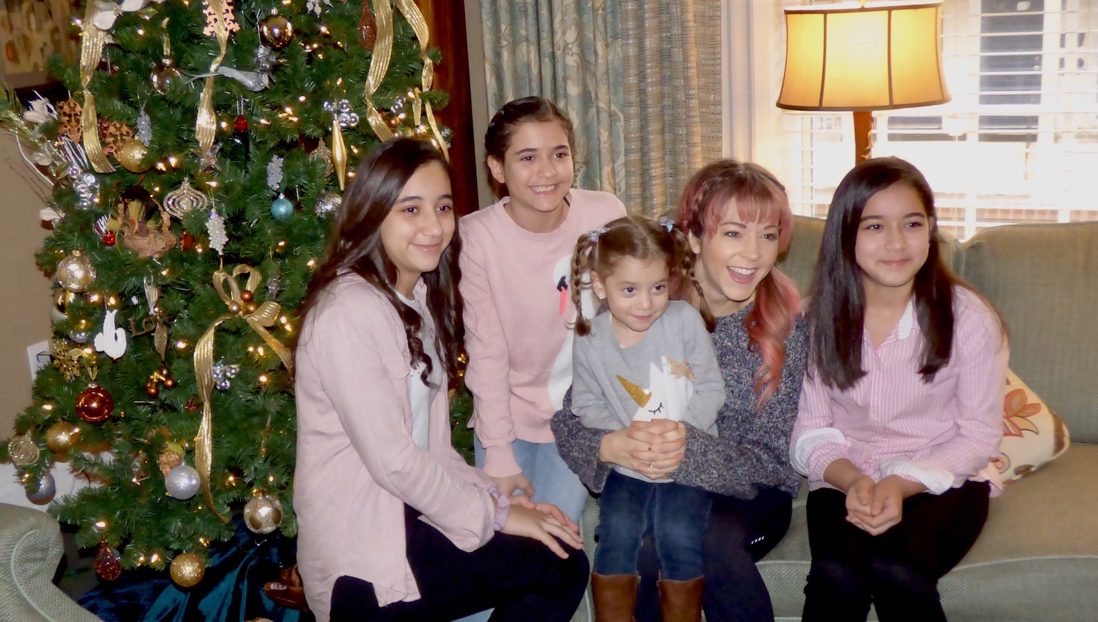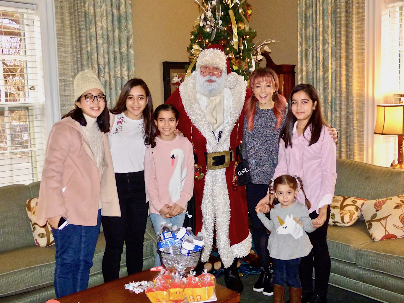 Lindsey Stirling is shown with Santa Claus, Jana Said and Jana's family.