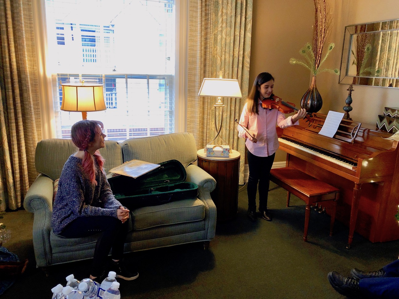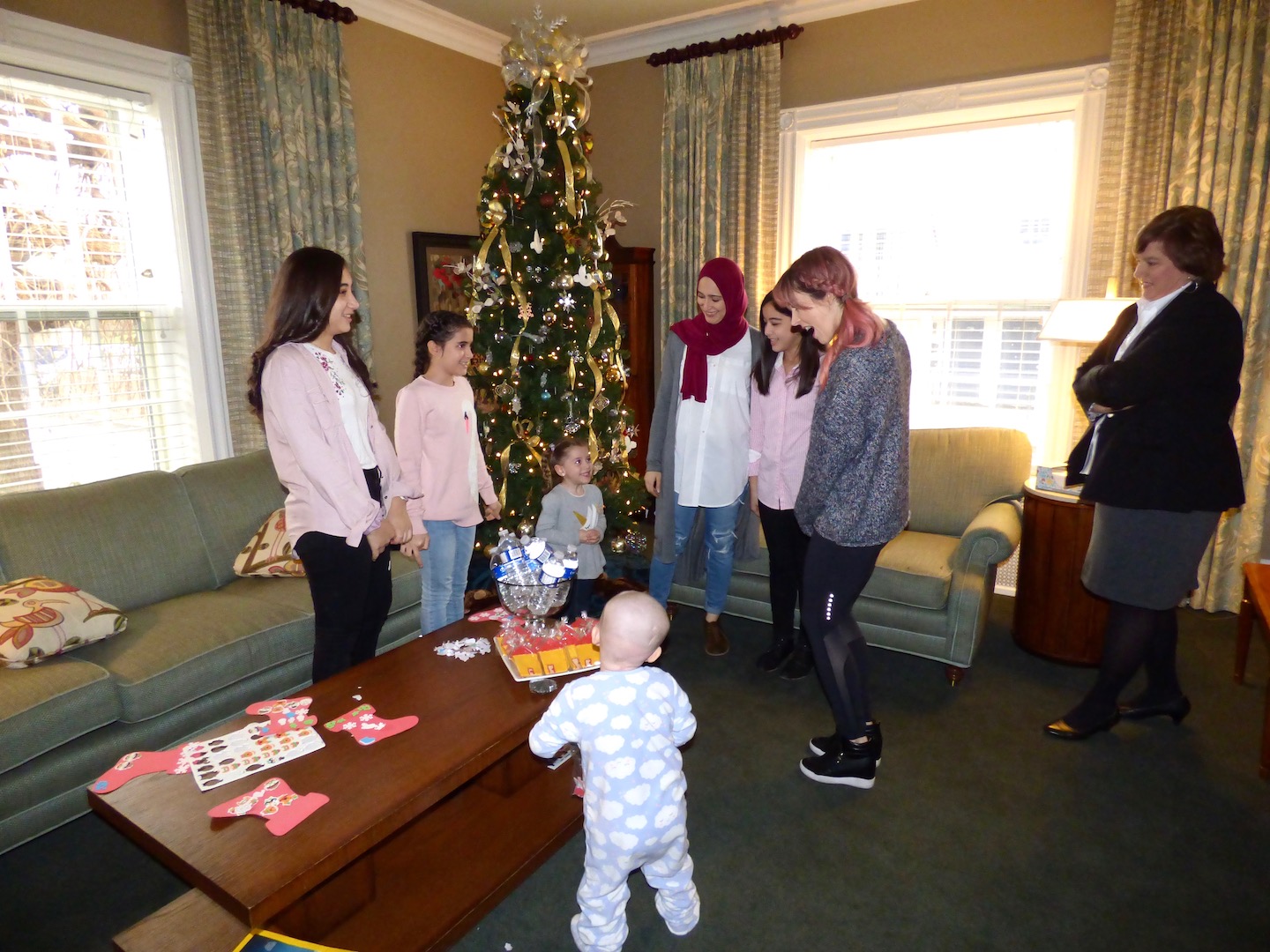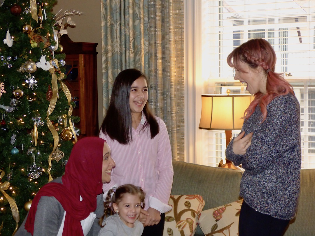 Stirling spent time with Rachael Jeon, a University at Buffalo freshman from Ithaca, and Jeon’s mother, YoungJu Yim, of South Korea. The artist also chatted with budding violinist and former house guest Jana Said, 11, and her family. Jana performed a song for Stirling.