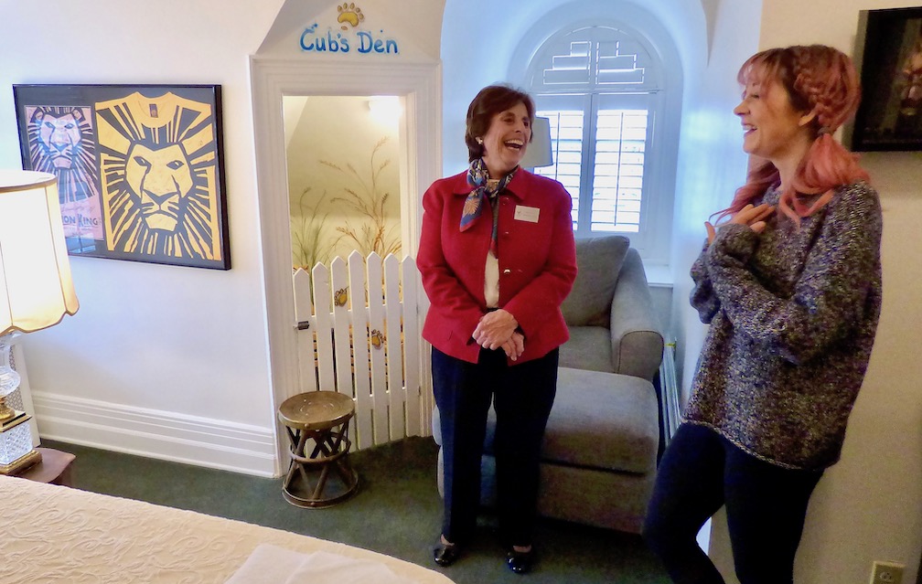 Ronald McDonald House Charities of Western New York Executive Director Sally Vincent shares a laugh with Lindsey Stirling in "The Lion King" room.